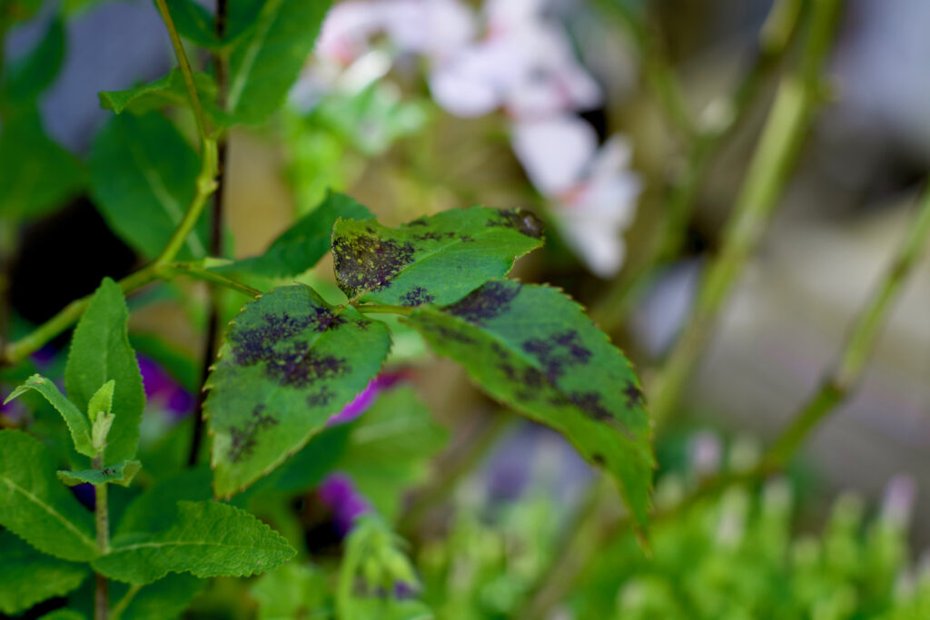 Mais ces derniers temps, les rosiers n’ont pas la vie facile. Ils sont régulièrement touchés par une maladie qui provoque des taches noires sur les feuilles et fait par les faire tomber. La maladie est causée par le champignon Marssonina rosae et est très fréquente. Elle est favorisée par des feuilles trop longtemps mouillées et une forte humidité de l’air.