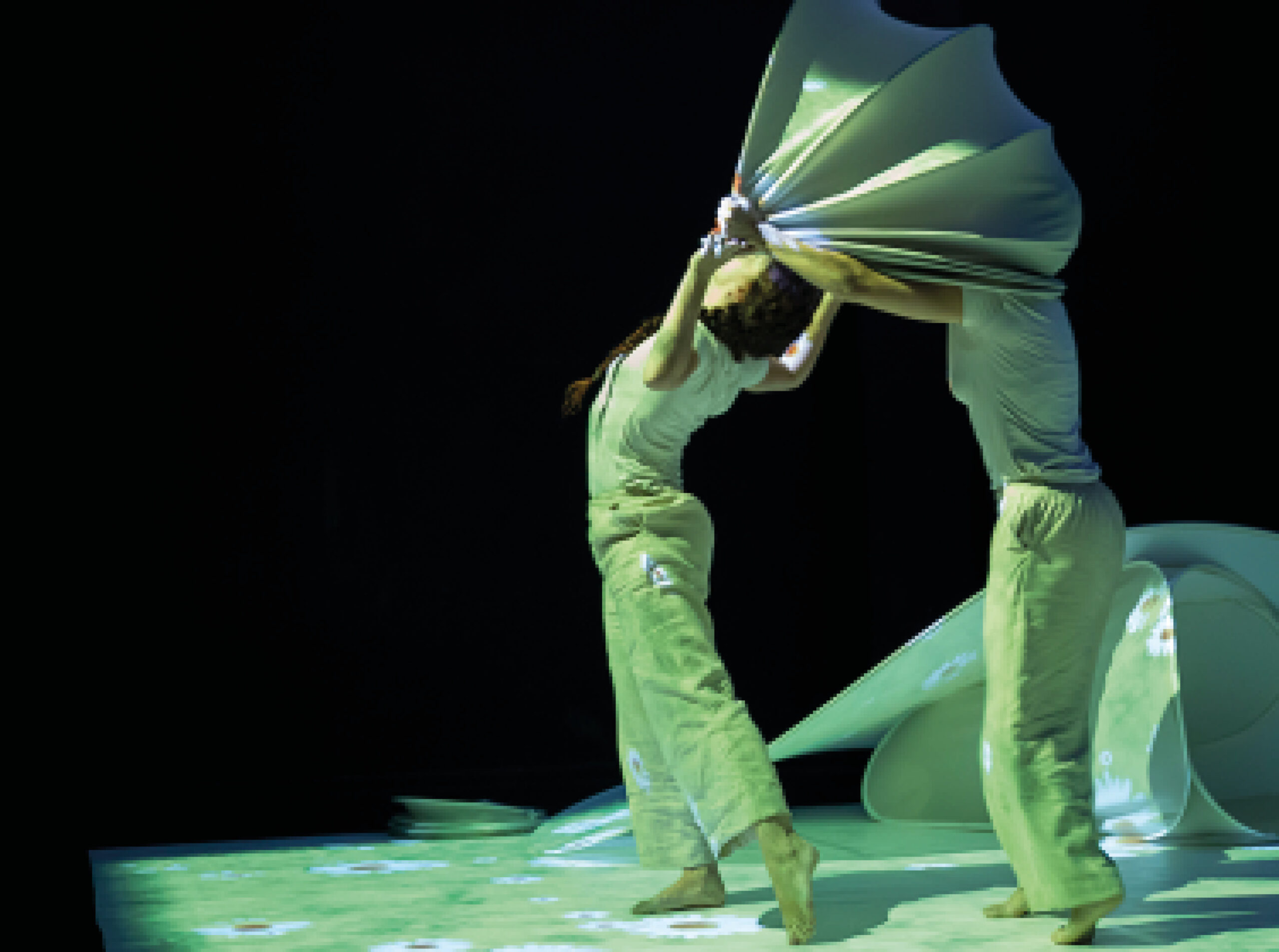 Avec le langage de la danse et le support de sculptures en tissu, deux personnages sur scène cherchent leur tanière possible pour affronter en toute sécurité l’obscurité de la nuit, le froid, la pluie, le soleil.