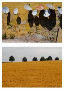 Cependant, placées côte à côte, certaines, plus intimes, nous donnant à ressentir la densité du quotidien (l’ombre des antennes de TV sur le mur ocre /les champs) semblent nous inviter à une plus grande intériorité, évoquant « cette montée ontologique »  dont parle P. Ricoeur, comme si le corset de la distance critique ne parvenait pas à contenir une certaine nostalgie…