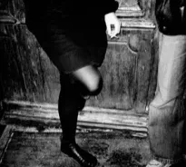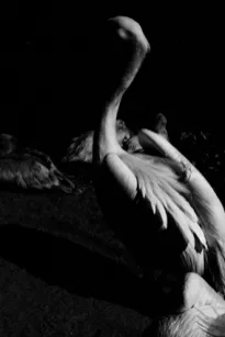 En outre, le régime antilogique des images fonctionnant selon une double polarité – vide/plein, haut/bas, opacité (d’un bas noir ajusté)/transparence (de ce même bas par tension), vie/taxidermie (mettant la photo en abyme ), couleur chaude/couleur froide, prédation/pariade, texture et plis d’une étoffe/grain de la pierre et ondoiement de madrépores… etc – placent le regardeur dans l’incapacité d’effectuer un choix interprétatif d’ordre paradigmatique. Ce qui se joue, c’est l’interrogation de certaines évidences de la vision qui consistent à séparer dans des carcans le monde en couples d’opposition nettes : formes/matières, féminin/masculin… etc. Le spectateur est invité à méditer sur ce trouble perceptif tandis que les identités s’affolent et que tout s’échange. Il n’y est pas question d’illusion ni de réalité: la réalité est illusion et inversement. Le monde se retire sous son vêtement d’ombre et de lumière, cette dernière masquant plus qu’elle ne révèle, pétrifiant les fruits qu’elle nous abandonne (le tatouage enfantin sur le bras exposé), (les reproductions de Courbet et Hopper sur le tourniquet). Quand l’organe de la vue est contradictoirement celui-là même de son impossibilité, le rêve d’une coïncidence impossible du positif et du négatif relève du fantasme de la transmutation alchimique (photo n°3 ).