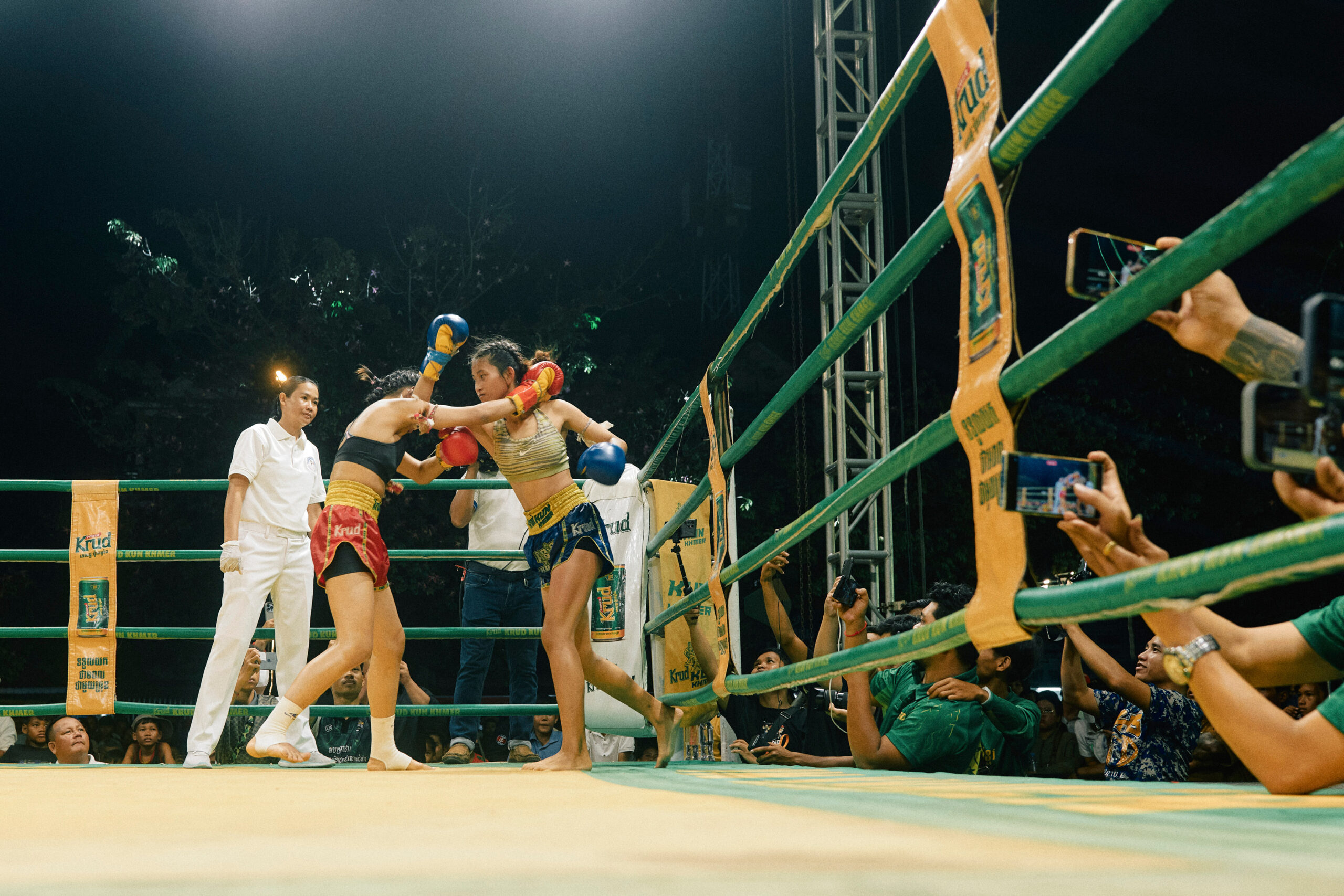 jeunes du village, « J’ai commencé avec ma fille, puis les autres sont venus ». Ici, peu de confort : baraques en tôle, dortoirs partagés. Souannita combattra bientôt au festival de l’eau. Comme beaucoup de jeunes cambodgiennes, elle rêve d’échapper à la pauvreté grâce à la boxe, sur les traces de Sam Taroth, star nationale et figure d’émancipation.