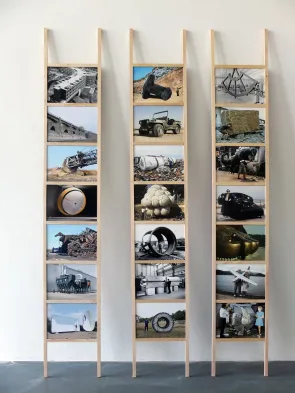 Troisième cas : représentation à l’échelle 1. Celle où la taille de la photo épouse exactement les dimensions de l’objet photographié. Accentuant ainsi l’adhérence entre la photo et le réel (poussée à sa littéralité maximale, c’est la technique du contact). Une simplicité apparente, comme un retour au document brut. Mais avec cette idée en arrière-fond : c’est quand la surface de la photo recouvre exactement son objet qu’elle exprime tout l’écart entre ce qu’est une photographie et ce qu’elle représente. Le spectateur s’illusionne : il croit connaître l’objet représenté, il croit en faire l’expérience, alors qu’il ne tient que des images.