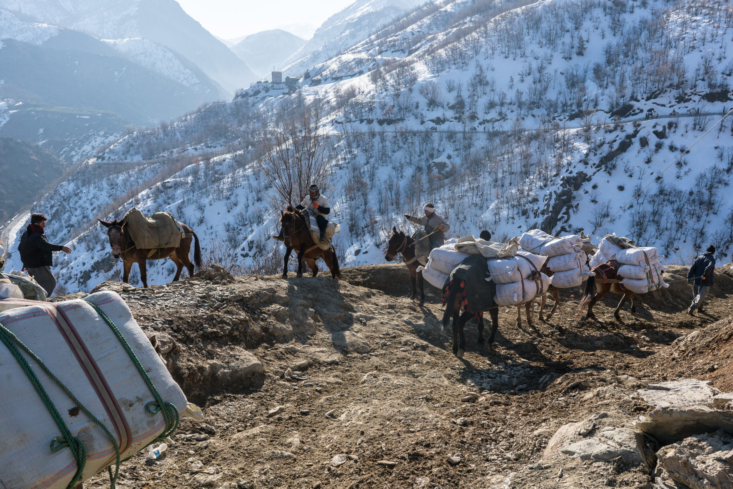 Le village de Zale, ancien refuge des peshmergas, combattants kurdes, perdu dans les montagnes du Kurdistan à la frontière de l’Iran et de l’Irak, est aujourd’hui le théâtre d’un étrange ballet quotidien. Ici, l’une des seules sources de revenus est le transport de marchandises. Commandées à l’étranger, elles finissent leur trajet, acheminées de l’Irak à l’Iran à dos d’homme ou de cheval, par des Kurdes iraniens. Si certains d’entre eux bénéficient d’un certificat de travail, nombreux sont ceux qui traversent illégalement. Outre les tirs des gardes-frontières, ils doivent affronter des pistes étroites et dangereuses, enneigées l’hiver, dont le sol est souvent encore infesté de mines.