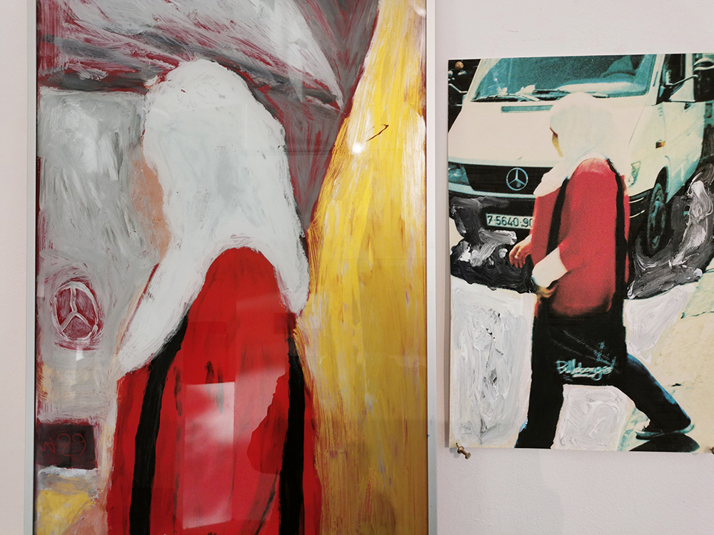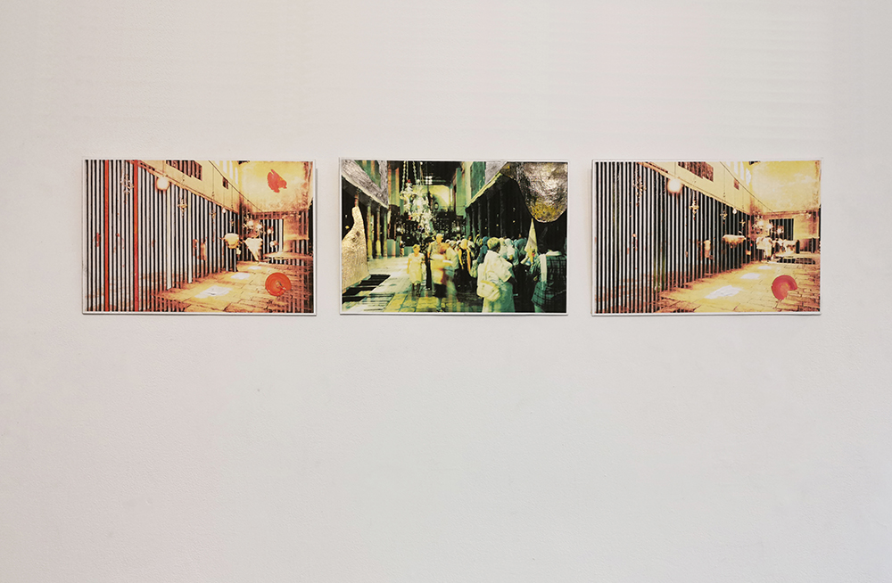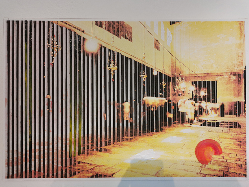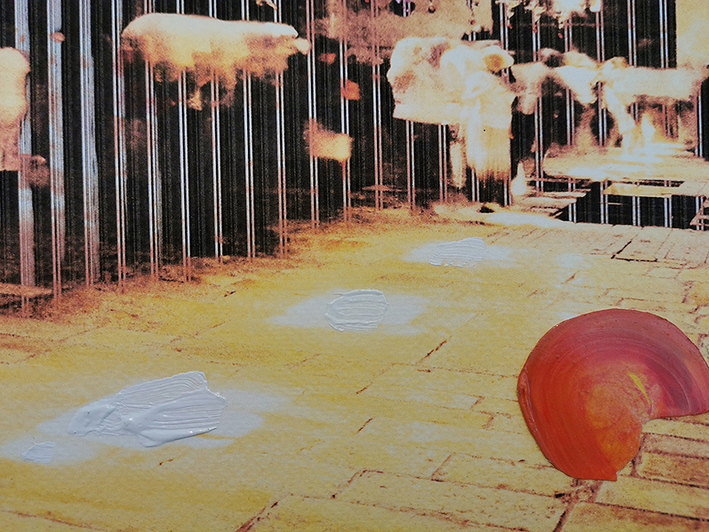 Des photographies, nous avons gardé les accidents de tirage : des problèmes de chimie propre à l’argentique, des temps d’ouverture de l’obturateur trop longs – Et la peinture intervient aussi, comme pour masquer et redéfinir des contours plus abstraits. Fragiles frontières de l’image.