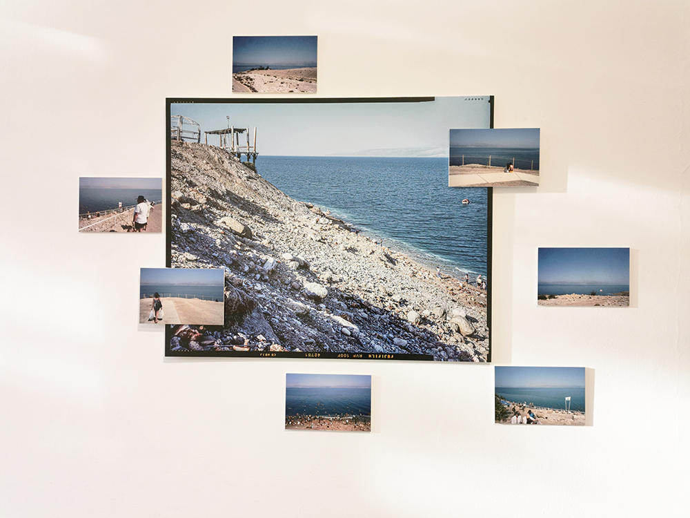 Cette flaque étrange, de touristes et de sel. La Jordanie marque l’horizon, tandis que flotte les gens devant elle. Un amphithéâtre géant sertie de gradins rudes, un désert de rocaille. Autour de nous, des géants de pierres brunes et rouges nous toisent déformés par une mer d’autrefois. La chaleur écrase l’étendue huileuse – la rumeur lointaine des vacanciers se mêle aux mirages du désert voisin.