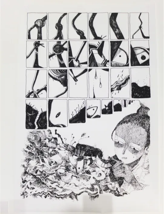 Bande dessinée et photographie contemporaines ont en commun de chercher une nouvelle force expressive dans l’occupation de la surface de présentation : le mur pour la photographie, la page morcelée en petits rectangles pour la BD et le roman graphique. Dans tous les sens du terme ils sortent du cadre.