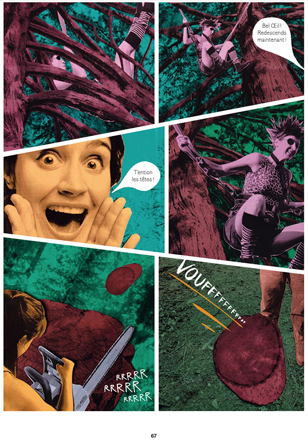 L’exposition présente des ciné-romans tirés du film, qui ont été rassemblés dans Contrebandes Godard (Éd. Matière, 2018). En miroir, est exposé le roman-photo La Déflagration des buissons (Éd. FLBLB, 2022) de la plasticienne et scénographe Julie Chapallaz. Une fable poétique, onirique et débridée, agrémentée de collages expressionnistes, aux couleurs percutantes, qui veut faire fonctionner l’imaginaire du lecteur.