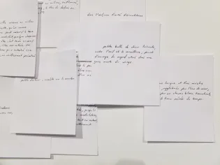 La photo seule ne saurait donc tout dire. Pas plus que le texte seul d’ailleurs. Et finalement pas plus que la réunion des deux. Mais alors, que chercher avec cette forme composite ? Un art littéraire. Non pas la littérature. Non pas la description photographique poussée à une telle intensité de détails qu’elle pourrait sembler déployer une sorte de texte visuel (ce que l’on pourrait dire de certaines photos de Jeff Wall, par exemple). Mais un art dont le propos serait de révéler la connexion intime entre ce qui se montre et ce qui se dit. Dont l’objet précis serait de dire à quel point l’image ne peut que s’écrire tandis que le texte ne peut s’imager. Entrelacer l’écrit et le visuel pour créer une sorte de forme intermédiaire, suspendue, n’existant presque que mentalement. Retenant un instant le discours qui cristallise le temps et la vision. L’expérience.
